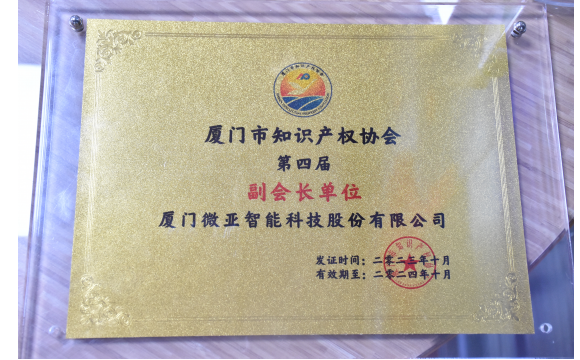 微亞科技榮獲“廈門市知識產(chǎn)權(quán)協(xié)會第四屆副會長單位”稱號