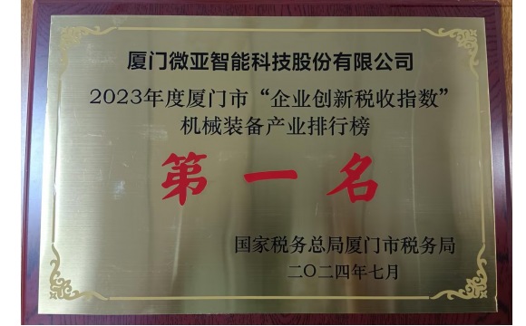 喜獲殊榮!微亞科技榮獲2023年廈門市“企業(yè)創(chuàng)新稅收指數(shù)”機(jī)械裝備產(chǎn)業(yè)排行榜第一名